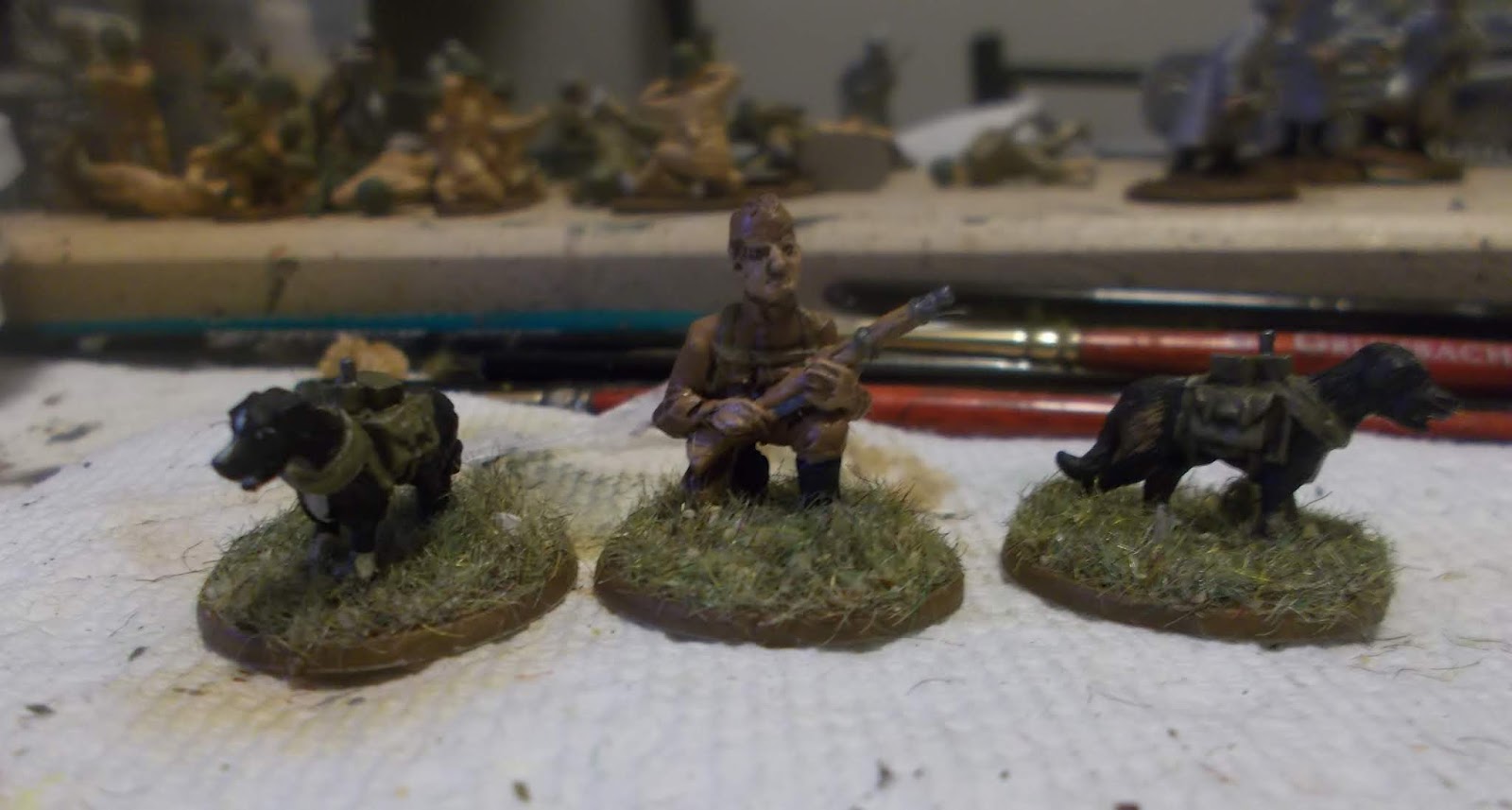 So here are my two anti-tank dogs and their handler, from Warlord Games.